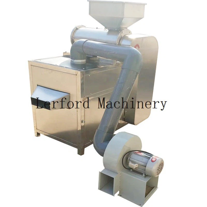Ez a gép három részből áll: adagolórendszer, aprító rendszer és osztályozó rendszer. A mandula aprító vibrációs adagolórésze révén a földimogyoró egyenletesen esik a tartályba (badamdaráló), a földimogyorót pedig egyenletesen aprítja a főzőlap. Az osztályozó részleg különböző méretű képernyőkkel van felszerelve. Tegye különböző méretű földimogyorót, és állítsa be a kész földimogyoró-szemcsék méretét az adagoló szállítószalag munkasebességének változtatásával.